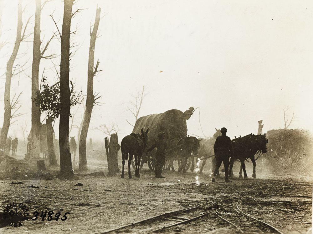 Donkeys of the 304th Ration Train carrying food to troops in the lines