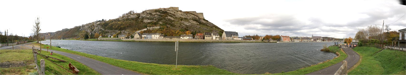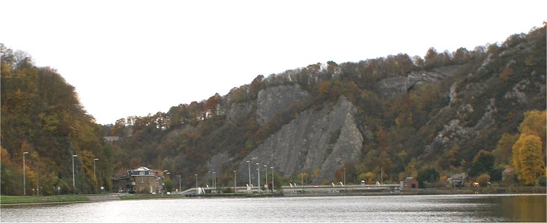 force. Perhaps the Germans could force a quick crossing. At Yvoir, on the right side of the panorama, there is a bridge. This is approximate the site of the wartime bridge. The stonework on the far bank next to the stone building appears to be Belgian defenses. On the afternoon of May 12th, the last of the French cavalry crossed the bridge to the safety of the west bank. The Germans were following closely in the hope of capturing the bridge intact. German armored cars tried to cross the bridge, but both were knocked out on the bridge by a 47mm anti-tank gun, blocking the way. The head of the Belgian engineers, Lt. Wispelaere activated the plunger to blow the explosives on the bridge. It didn't work. Using the manual backup, he blew the bridge but was killed by German fire as he did so. The first German attempt at crossing had been foiled, but more troops were approaching the river further south. |