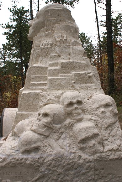 | Near Marcheville is a monument to a French literary figure, Louis Pergaud, who died in April 1915 after being wounded and captured in an attack to support operations at Les Eparges. Saved by the Germans, a French artillery barrage killed him. At the start of the war, Pergaud tried to avoid military service as a pacifist, to no avail. | ![]() |