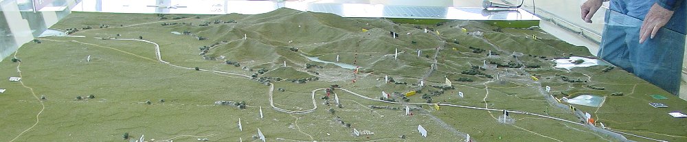 This is a view from the west side looking east into the area of the previous pictures. North is to the left. Once again, I believe Jackson Heights is to the right of the S curve in the railroad, the big hill in the center is Hill 717, and Tunnel Number 2 is along the rightmost line of screen near the white blob of screen.