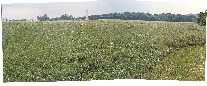 Packenham saw men streaming to the rear and rode forwrd to rally his men. Somewhere near here, he was mortally wounded. His final orders were to bring up Lambert's reserve but the signaling bugler was hit before he could sound the call. In a final desperate charge, Gen. Gibbs was mortally wounded and the Highlanders lost half their men in a single volley. The men at last fell back to regroup. Gen. Lambert, now in command, sent some West Indian troops into the swamp to flank the American line, but they too were repulsed. British losses for the day were 700 killed, 1,400 wounded, and 500 captured, about a third of the force. The American army lost only 13 killed and 39 wounded.