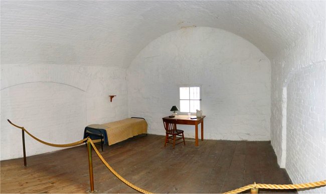 After Lee's surrender in April 1865, President Jefferson Davis was imprisoned at Fort Monroe in this casemate beginning in May 1865 on suspicion of being involved with the assassination of President Lincoln. In October, he was given better quarters. In 1867 he was released on bail, and in 1869, all charges were dropped.