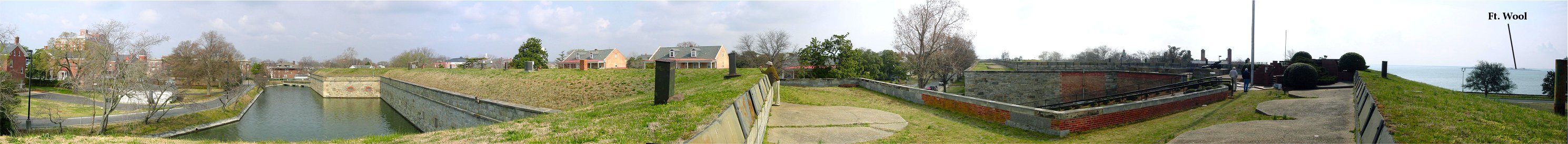 The menace posed by the CSS Virginia was surprisingly enough ended in part due to the advice of President Lincoln, who visited Fort Monroe and stayed in the house prominent in the center of the above panorama. Lincoln suggested an amphibious landing near Norfolk, which, when executed on May 10th, led the Confederates to abandon Norfolk. The CSS Virginia required the relatively deep port at Norfolk to operate, so the ship was doomed. The Confederates blew the ship up rather than let it fall into Union hands. Even without the landing, however, Norfolk was likely to fall as either McClellan's advance up the Peninsula or Burnside's pressure from North Carolina could have led to the same result. |