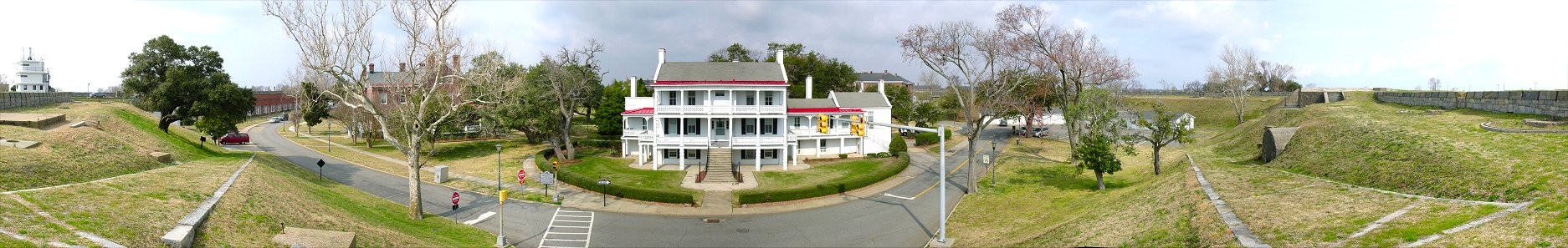Prior to the war, an engineering officer named Robert Edward Lee lived in the fort for a while, helping with its construction. He occupied the center-most of the three houses shown here. At this point in the war, Lee had failed in an attempt to recapture western Virginia and was serving as President Jefferson Davis's military advisor. At the end of the Peninsula campaign, he would take over command of Joe Johnston's army and optimistically name it the Army of Northern Virginia despite its being in the southern half of the state.